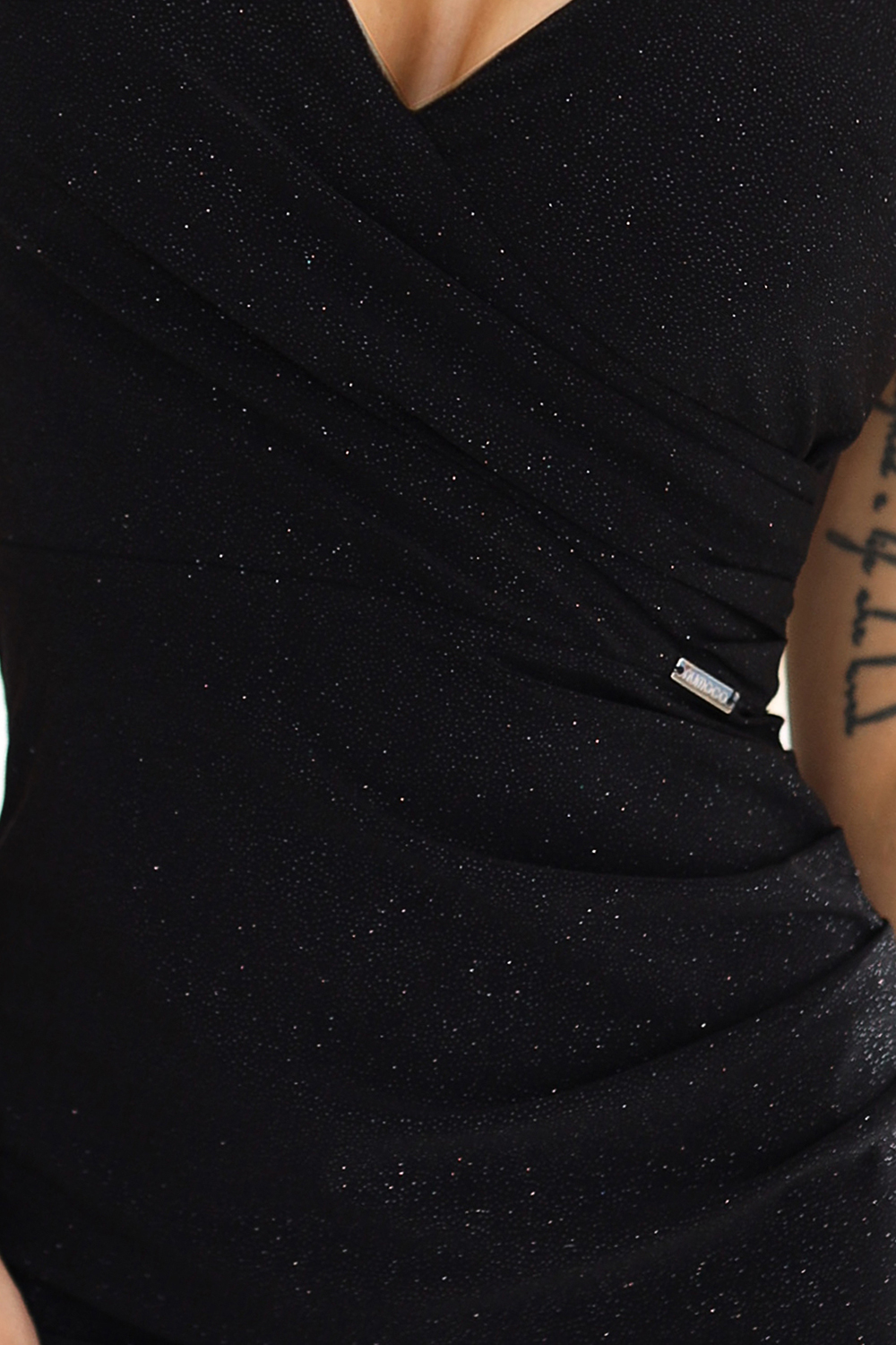 610-1 Rochie creion strălucitoare cu sclipici, decolteu înfășurat și bretele - Negru
