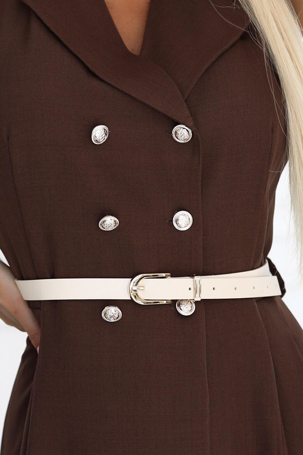 596-4 Rochie elegantă midi cu nasturi aurii și curea - ciocolatiu