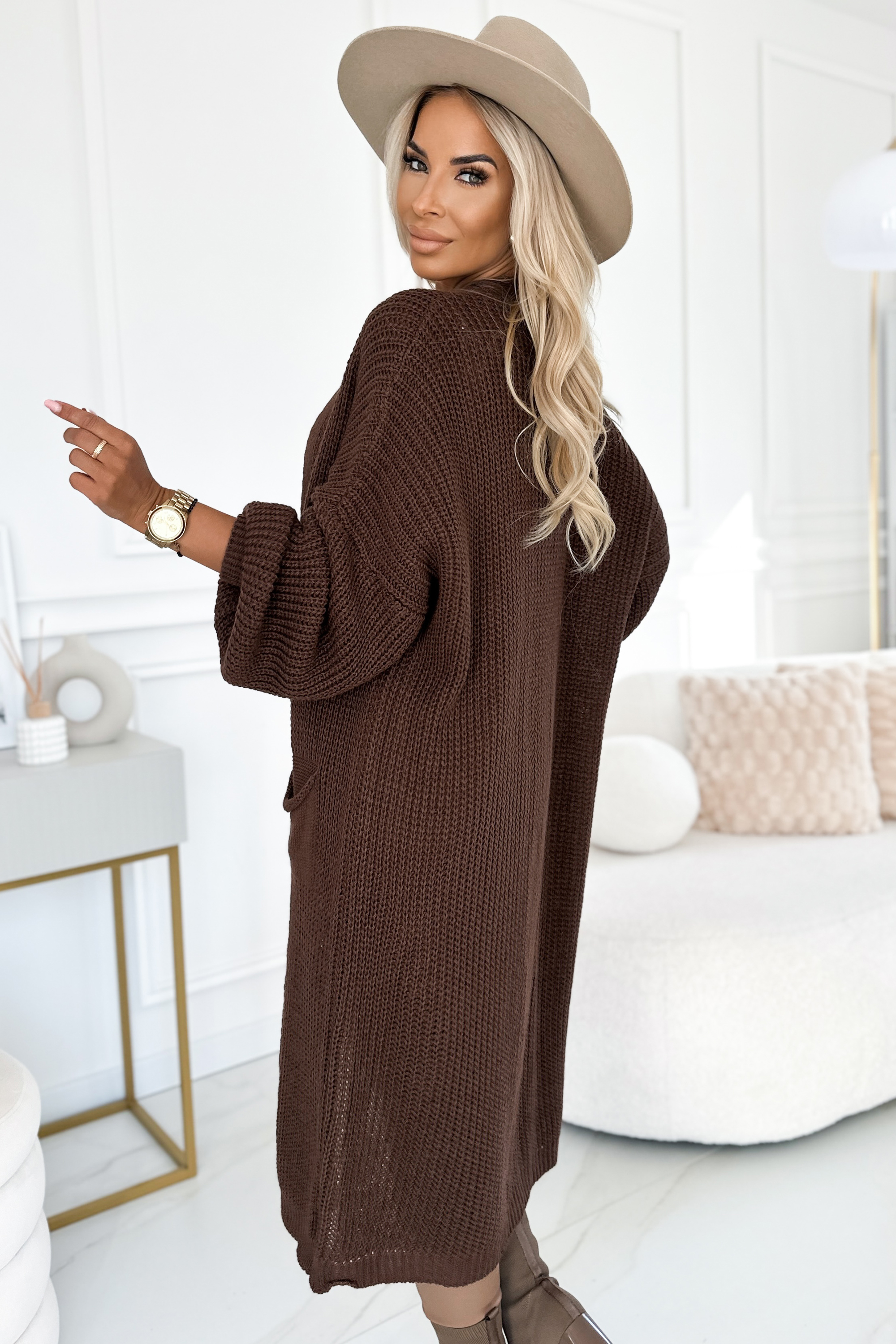 Cardigan lung cu buzunare – ciocolatiu | Numoco Basic